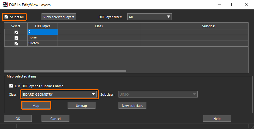 然后,再执行菜单栏上的【Edit -> Split Plane -> Create】建立分隔平面命令,选择需要进行自动铺铜操作的层: