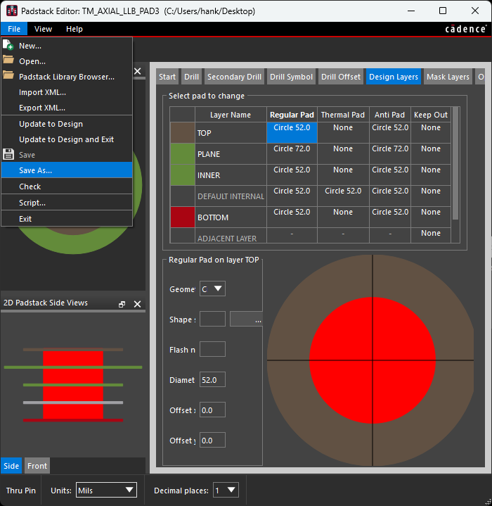 Regular Pad用于正片层、恒温焊盘Thermal Relief用于正片和负片层、负焊盘Anti Pad用于负片层(其中的Diameter参数表示的是过孔直径); - 【Mask Layer】:主要设置 阻焊层
