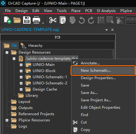 UINIO-Cadence-Template 空文件夹,然后打开 OrCAD