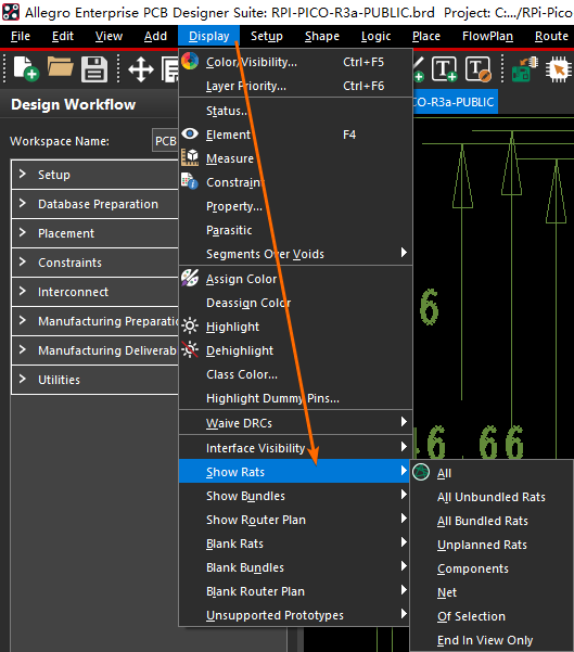 执行 Allegro PCB Editor 菜单栏上的【Display ->