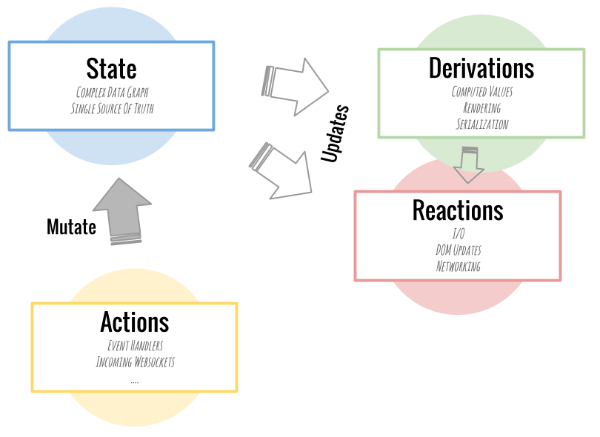 - Reaction:反应,指 State 状态发生改变时自动产生的变化,在 MobX 当中较为常用。