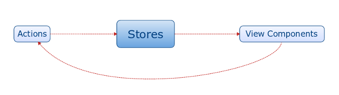 Creator发起一个新的action到dispatcher,应用中的所有store都将通过注册的回调函数接收到action。伴随应用程序的增长,dispatcher会变得极为重要,因为需要它通过指定顺序的回调函数去管理store之间的依赖。Store会声明式的等待其它store完成更新后再相应的更新自己。